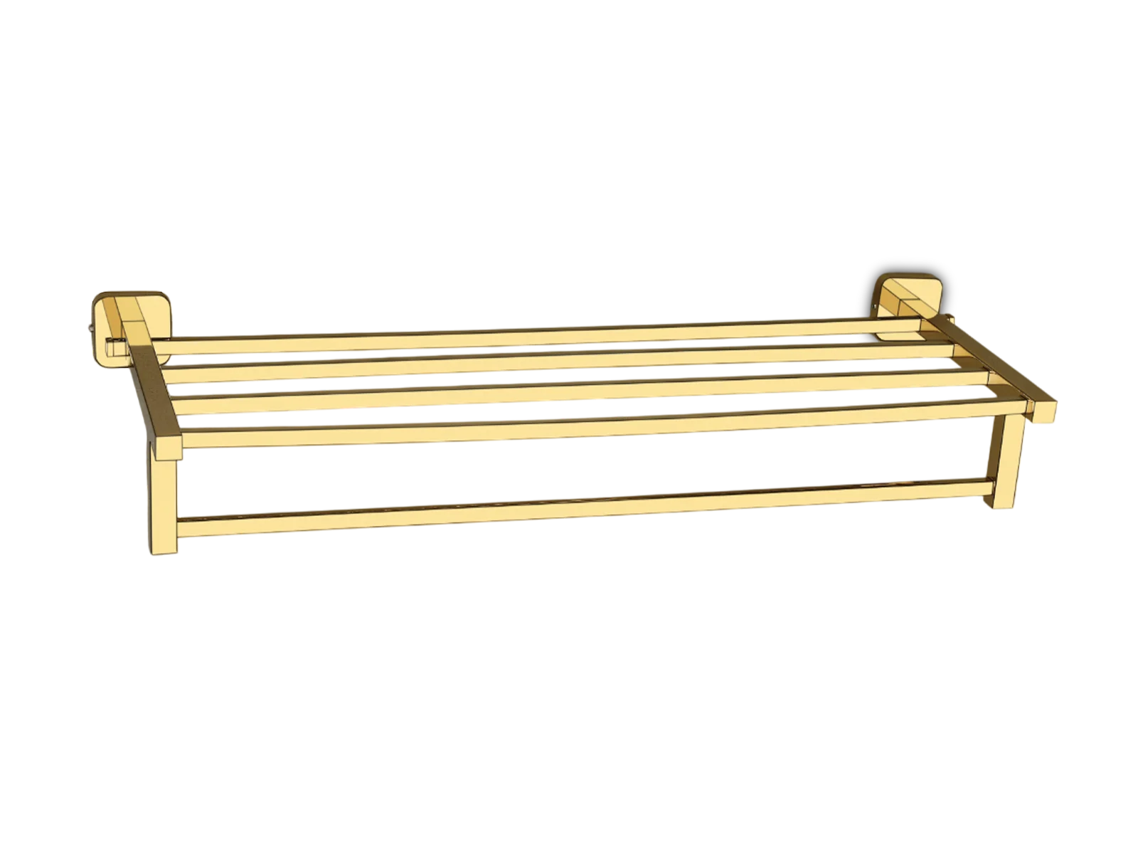 Elevate your bathroom's aesthetic with this elegant gold-finish wall-mounted towel rack. Designed for both utility and luxury, it features a spacious upper shelf for folded towels and a lower rod for hanging wet towels or clothes. Crafted from rust-resistant stainless steel with a durable PVD coating, this towel rack is perfect for modern and premium bathrooms.