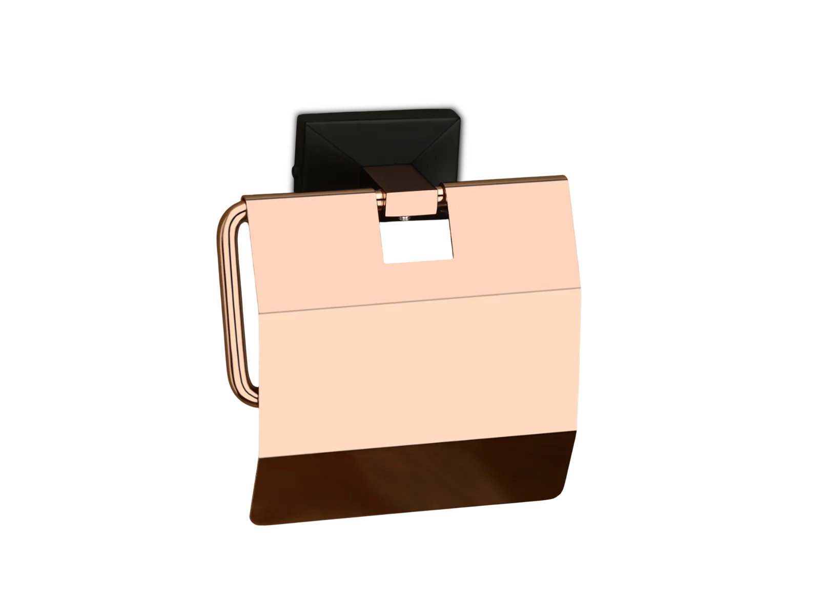 Rose Gold Toilet Paper Holder with Protective Cover – Black Base