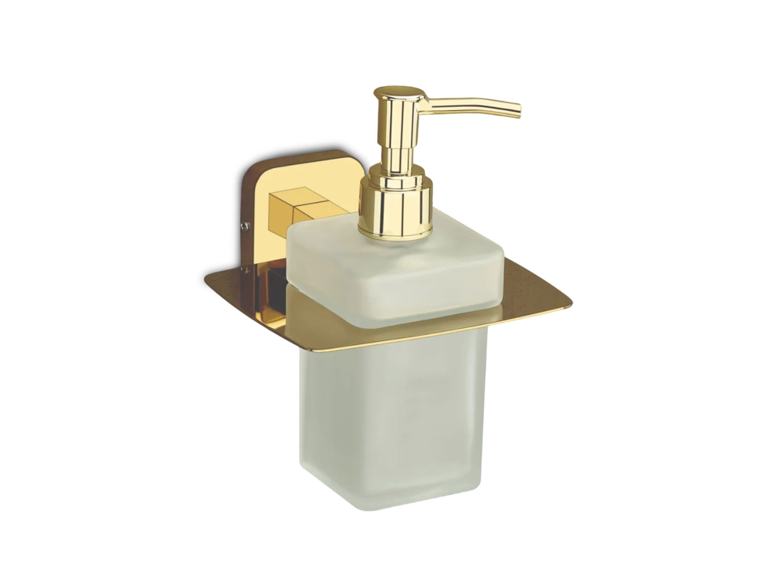 Wall-Mounted Liquid Soap Dispenser – Frosted Glass with Gold Finish